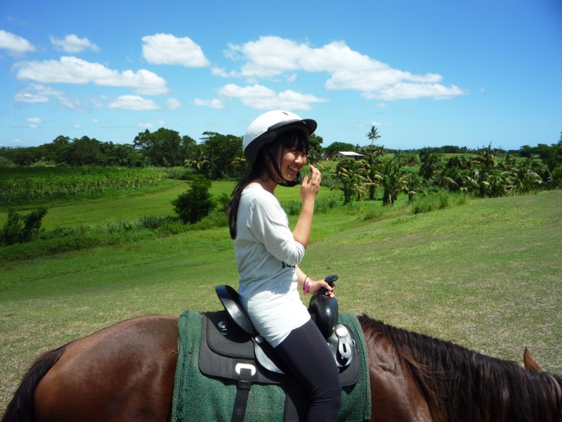 なんとほぼ8割の学生が、乗馬経験アリ!初体験の学生も含めて、みんな全く怖がることなく次々と馬に跨り、絶景の広がる山道をお散歩しました♪