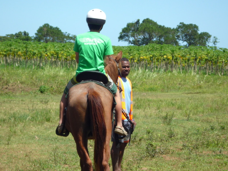 帰り道に通ったパパイヤ園ではおみやげをもらい、パパイヤを抱えながら戻ってくるみんなの嬉しそうな顔!