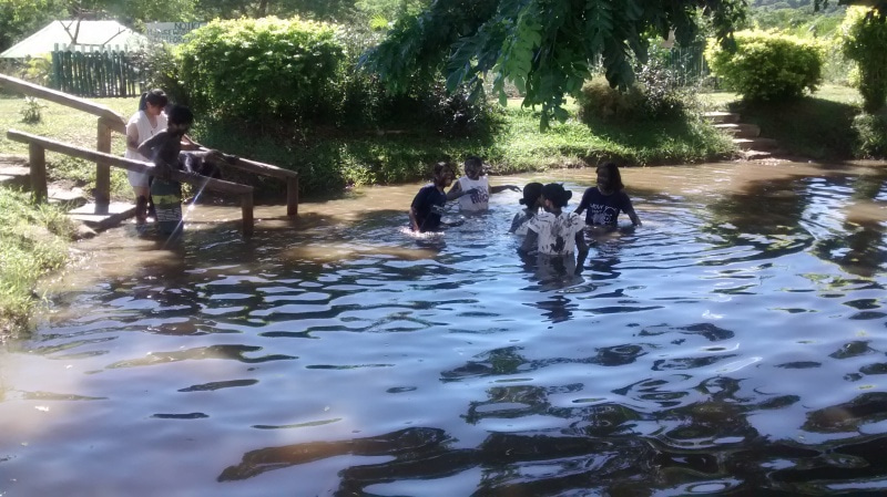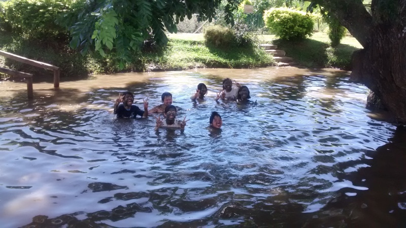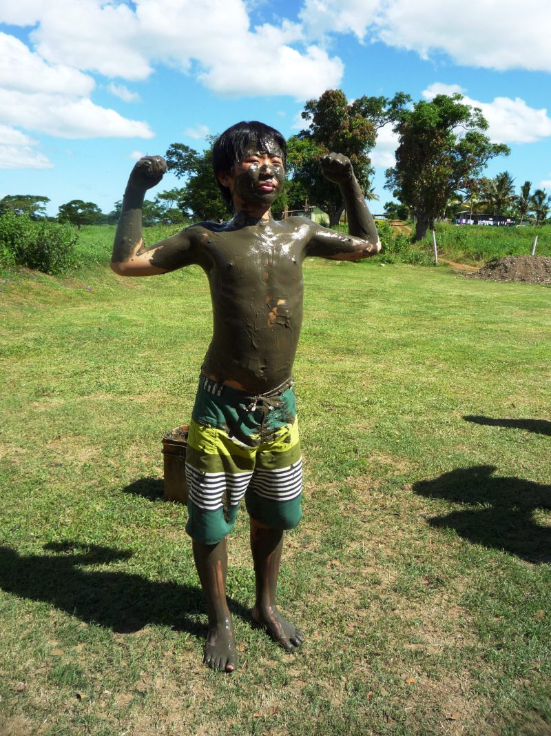 そして隣りのプールで泥をしっかりと落としてから最後にシャワーを浴びて着替えをし、お礼とサヨナラの挨拶をしに村に戻ります。