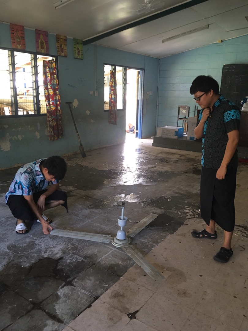 日本から戻り、今は他に誰もいない校舎で三人で働いています。