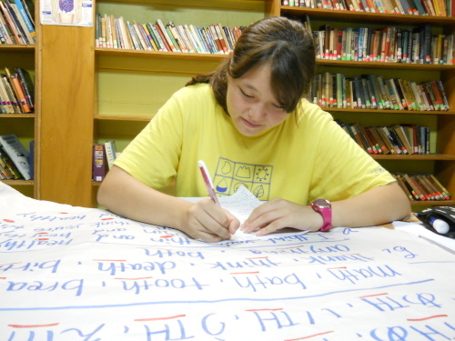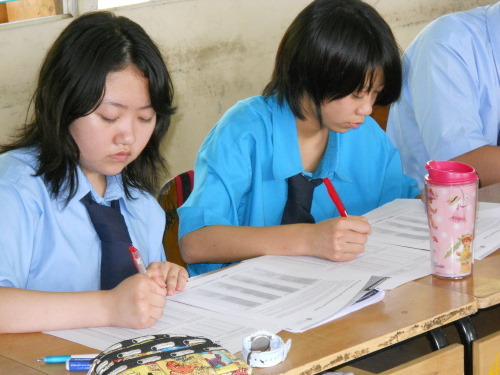 ↑ 初登校日の翌日、英語のクラス分けテストを受けているところ。
