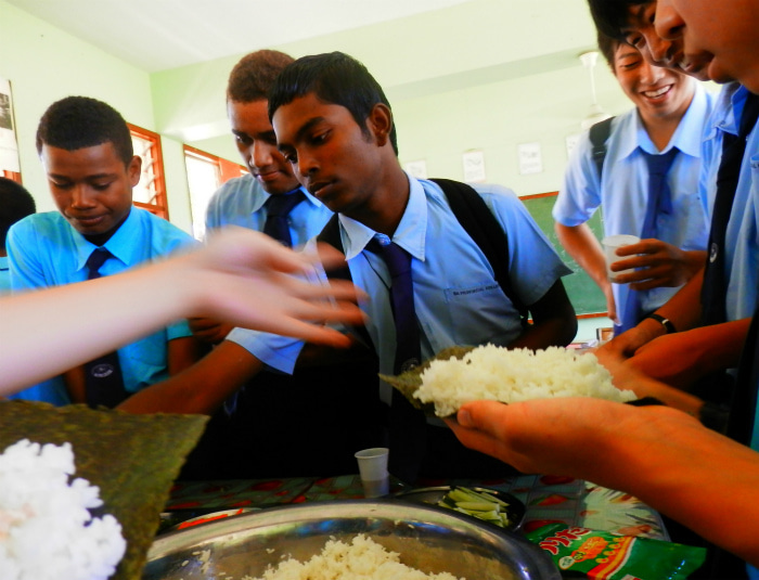 あまり手巻き寿司を食べたことが無いフィジーの学生たちにも大好評でした。